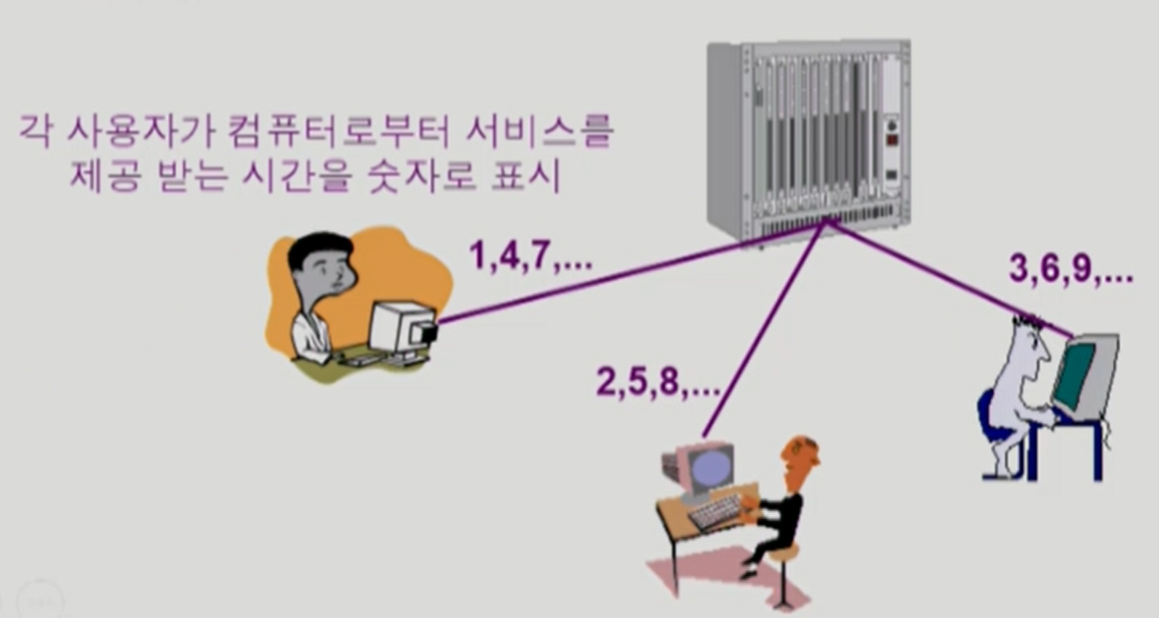- 여러 작업을 수행할 때 컴퓨터 처리 능력을 일정한 시간 단위로 분할하여 사용