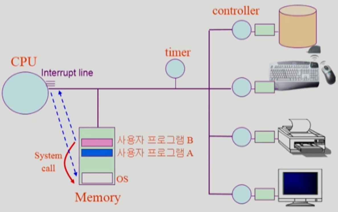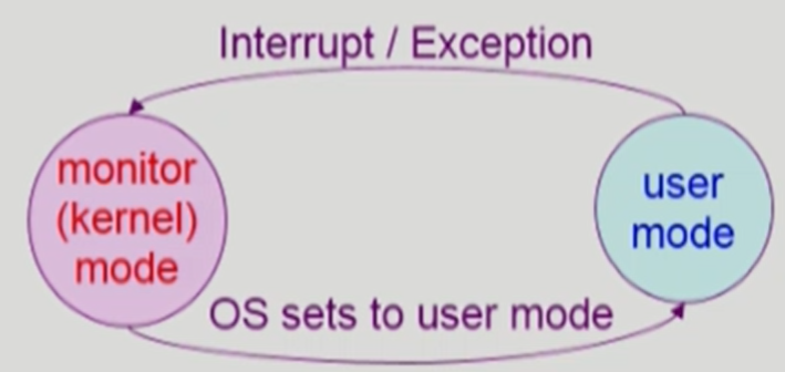 - Interrupt나 Exception 발생시 하드웨어가 mode bit을 0으로 바꿈