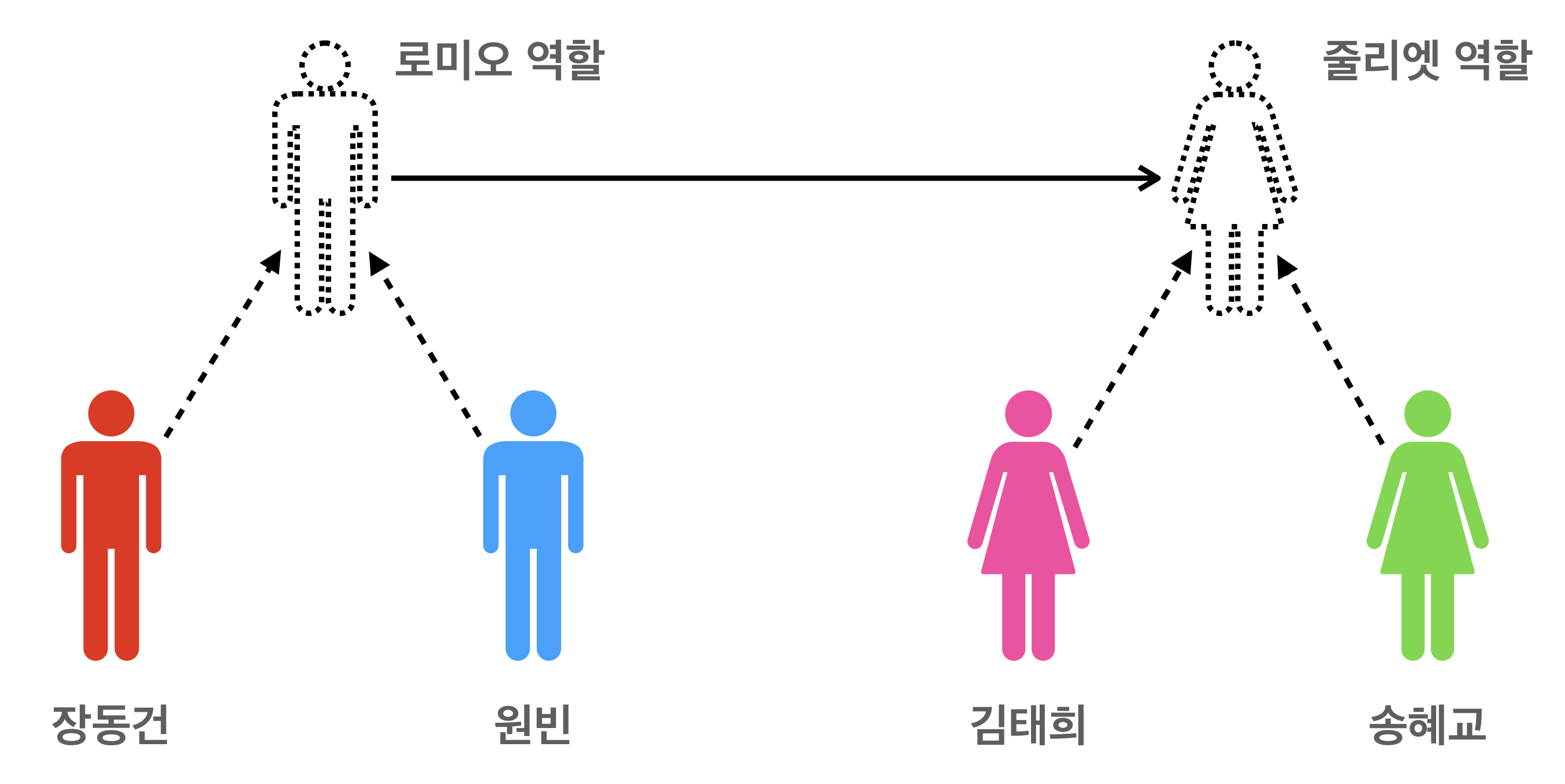 - 로미오 역할, 줄리엣 역할과 배우들(구현)을 구별하면 구현이 바뀌어도 역할은 바뀌지 않음