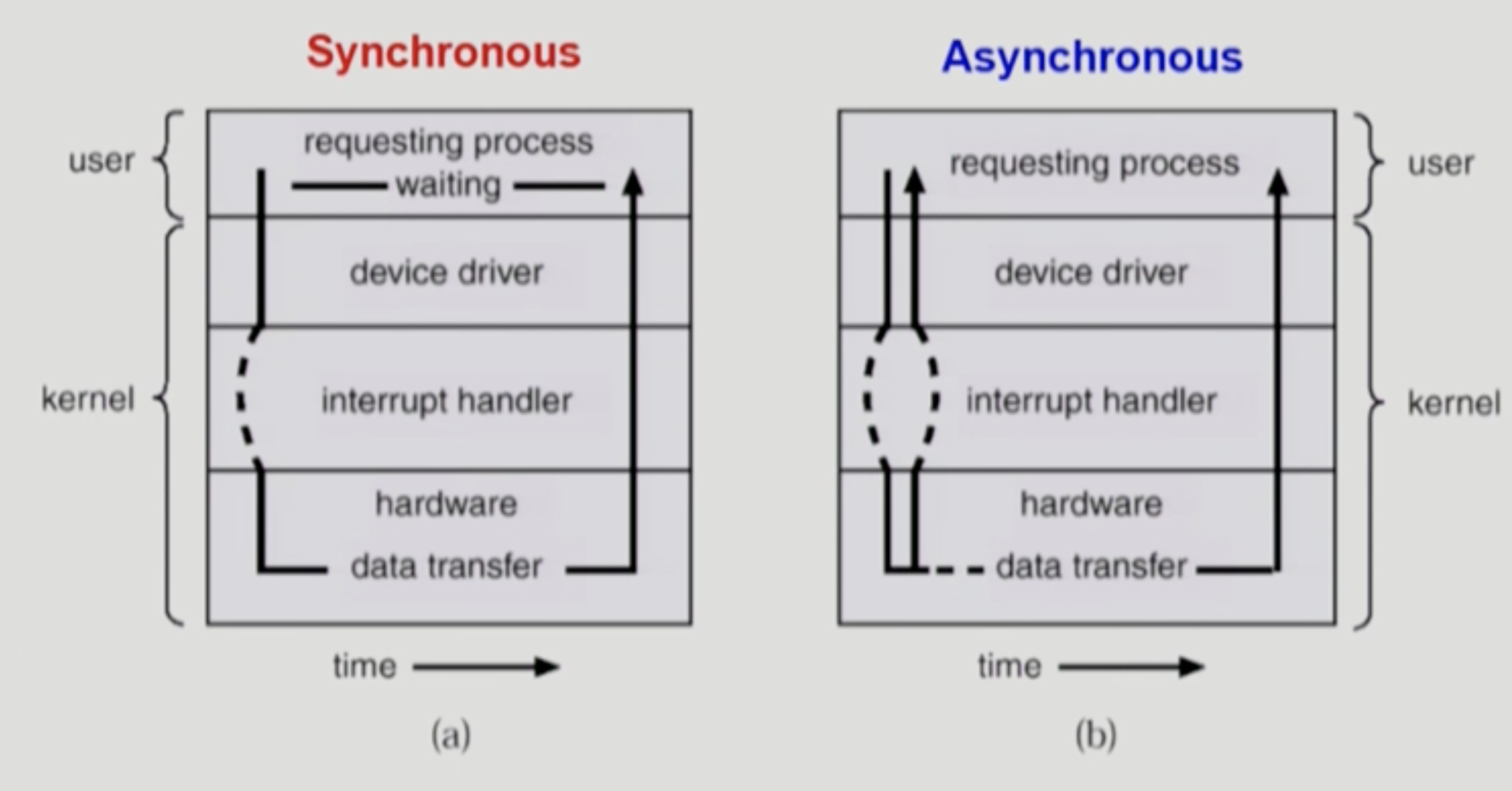 - 입출력이 끝날 때까지 기다려야 하면 동기식 입출력