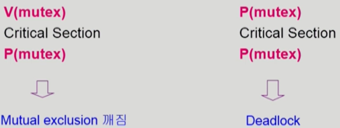 - Need binary semaphore(shared data의 mutual exclusion을 위해)